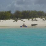 mensen ingepropt dan er eigenlijk in passen) en als de laatste auto’s weg zijn genieten we van de stilte en de indrukwekkende omgeving. Met het licht van de ondergaande zon lijkt het of je op de noordpool bent; alsof het een ijsvlakte is. Het is dan ook aardig koud als de zon weg is. Helemaal alleen zijn we niet bij het eiland… onze Franse buurtjes van de camping bij La Paz zijn er ook. Héél gezellig zeg…