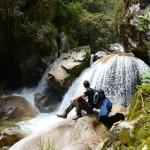 Op de tweede en derde dag van de trekking zien we de omgeving veranderen van ruw en rotsachtig naar regelrechte jungle, compleet met watervallen, papegaaien, kolibries en jaguars (nee, die laatste helaas niet en overigens heten die in het Spaans ‘tigres’ volgens Frans, huhuh). In plaats van uitsluitend afdalen hebben we ook een paar klimmetjes; niet meer dan dertig minuten per stuk, maar wel knap steil. De rollen zijn nu wel een beetje omgekeerd. Frans, die we inmiddels hebben omgedoopt tot ‘Luie Frans’, heeft in de gaten gekregen dat we het niet fijn vinden om zo vaak te stoppen en zeker niet wanneer we lekker in ons loopritme zitten. Hij vraagt zo nu en dan of we een kleine pauze willen, maar we zijn onverbiddelijk. Dan geeft hij eerlijk aan dat hij zuurstoftekort heeft en zelf graag wil stoppen. Prima, maar van zijn eerdere opschepperij over álle moeilijke bergen in Bolivia die hij beklommen heeft zijn we nu echt niet meer onder de indruk. En hij is notabene nog jonger dan Dick!
