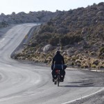 ’s Avonds, het laatste uur voor zonsondergang, is het uitzicht op de vulkaan op z’n mooist. We kunnen er met z’n drieën van genieten, want aan het eind van de middag is Loic gearriveerd, een vakantiefietser uit Brussel! Wat een held dat hij zich hier in z’n eentje met zijn zwaarbeladen fiets (55 kilo inclusief fiets) waagt. We nodigen hem uit om met ons mee te eten en drinken. In eerste instantie voelt hij zich bezwaard, maar als we hem ervan overtuigen dat we een soort supermarkt op wielen zijn – ook wel een SRV-wagen genoemd – is hij om. Het is erg leuk om zoveel fietsers tegen te komen. Loic is al de negende ofzo. Nooit gedacht dat er zoveel gefietst werd in Zuid-Amerika. We krijgen er tegelijkertijd ook een beetje een gevoel van heimwee van. Vooral Charlotte heeft hier last van. De jaloezie gaat dan niet bepaald uit naar het rijden op hoogte en de constante tegenwind waar je ze allemaal over hoort klagen, maar wel naar het enorm vrije gevoel dat je hebt op de fiets, meer nog dan met je eigen auto. Een volgende reis dan maar weer 🙂