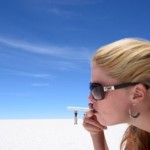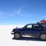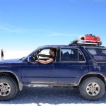 En inderdaad.. de volgende dag staat er een gigantische rij, ondanks dat het al twaalf uur is. Twee uur later hebben we onze benzine, maar deze keer wel met ‘korting’. Bolivianen krijgen hun benzine tegen een door de overheid gesubsidieerde prijs van zo’n drie tot vier Bolivianos, ongeveer 35 eurocent, per liter. Extranjeros betalen echter het driedubbele van die prijs, zonder de subsidie dus. De pompbediende moet dan een bonnetje voor je uitschrijven. Om onder die hoge prijs uit te komen kun je vragen om te tanken ‘sin factura’, zonder bonnetje. In de omgeving van La Paz was het soms best moeilijk om überhaupt een pomp te vinden waar we als buitenlanders mochten tanken, maar hier lukt het wel. Je gooit het dan op een akkoordje voor bijvoorbeeld zes Bolivianos per liter. Drie Bolivianos per liter voor het tankstation, drie per liter voor de pompbediende en drie voor jezelf, want je betaalt dan maar zes in plaats van negen Bolivianos. De jerrycans op het dak laten we ook meteen maar even tot de nok toe volgooien en daarna kunnen we eindelijk de Salar de Uyuni op. Spannend, want een echte weg, laat staan verkeersborden heb je er niet. Het is er lastig navigeren, want je hebt er nul orientatiepunten.