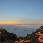 Na onze illegale nacht op de Salar (officieel mag je er niet kamperen) gaat om kwart over vijf de wekker en schieten we in onze kleren. Te voet gaan we naar de andere kant van het eiland waar we de zon zien opkomen, een spektakelshow als kwam hij speciaal voor ons op.